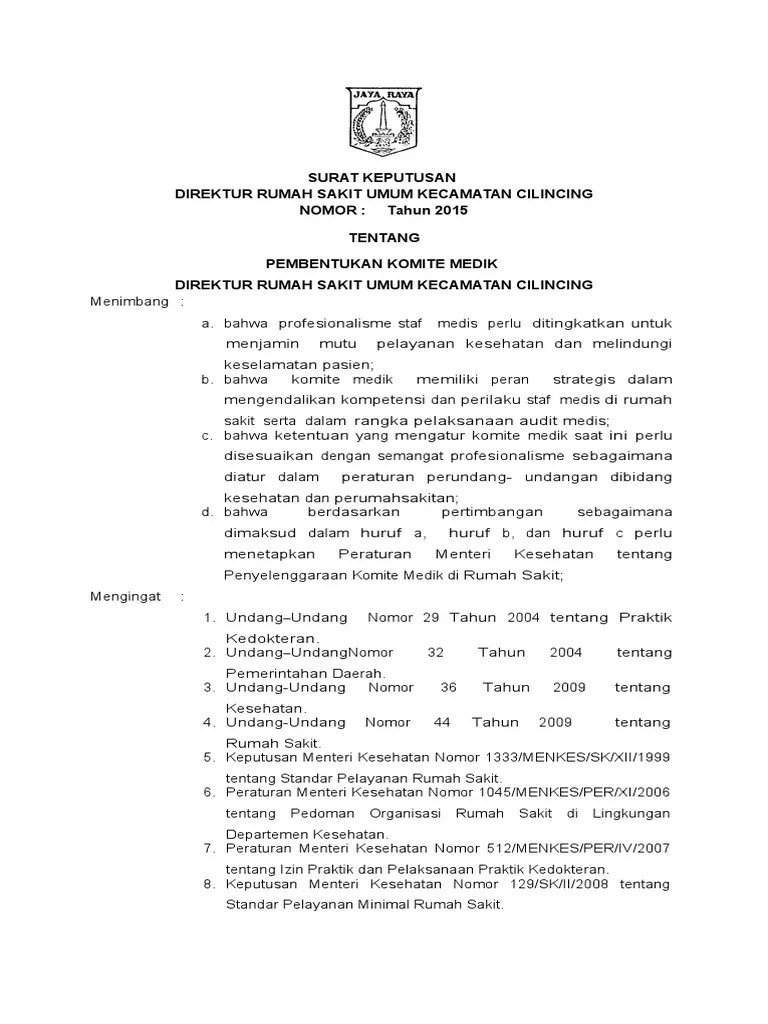 Surat keputusan direktur rsud prof. Tentang penyelenggaraan komite medik di rumah sakit: Komite medis dibawah direktur rs . Surat keputusan pengangkatan ketua komite medis tergantung posisi komite medis di dalam struktur organisasi rumah sakit. Keputusan direktur rumah sakit sari asih sangiang.